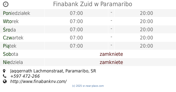 | Niedziela | zamkniete | |||||